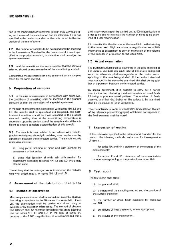 Keywords: ISO 5949, tool steels, bearing steels, carbide distribution, micrographic method, reference photomicrographs, metallography, sampling, nital, picral.