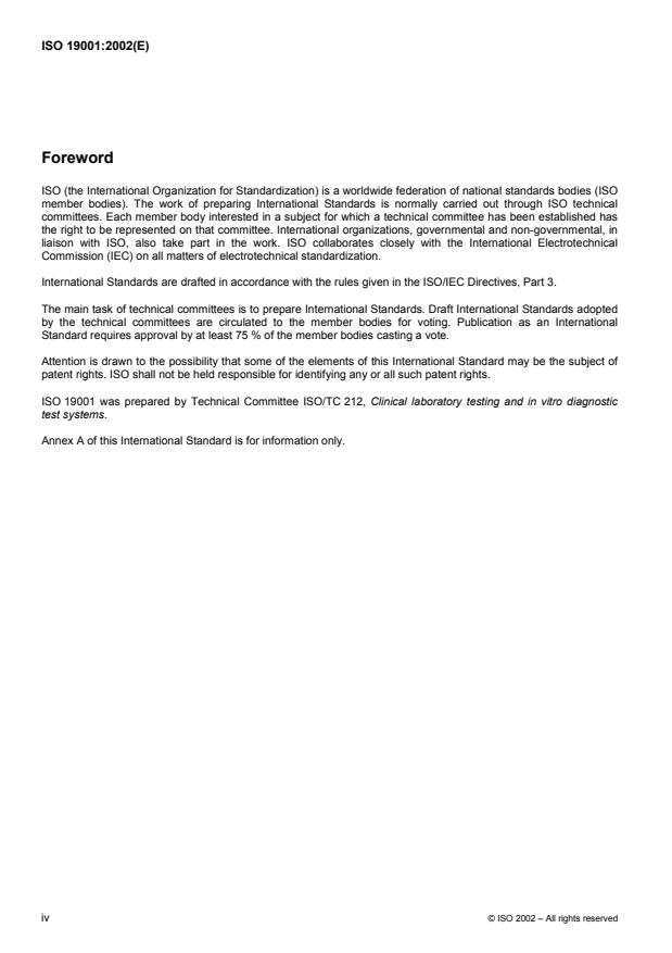 ISO 19001 was prepared by Technical Committee ISO/TC 212, Clinical laboratory testing and in vitro diagnostic