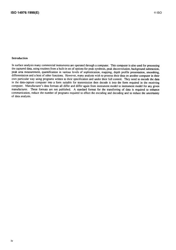 Keywords: ISO 14976, surface chemical analysis, data transfer format, data exchange, data formats, interoperability, metadata, data processing.