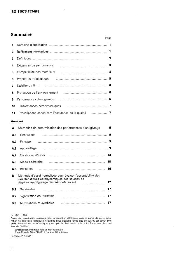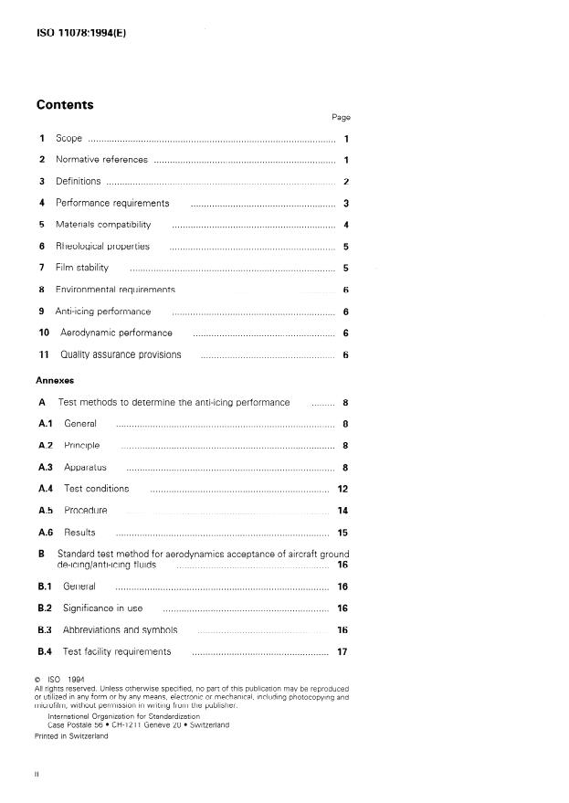ISO 11078:1994 is a standard published by the International Organization for Standardization (ISO). Its full title is "Aerospace — Aircraft de-icing/anti-icing non-Newtonian fluids, ISO type II". This standard covers: Establishes the requirements for non-Newtonian fluids used in the removal and prevention of frozen deposits of frost, ice and snow on exterior surfaces of parked aircraft and the minimum requirements for an environmental test chamber and test procedure to carry out anti-icing performance tests according to the current materials specification for ISO type II aircraft de-icing/anti-icing non-Newtonian fluids.