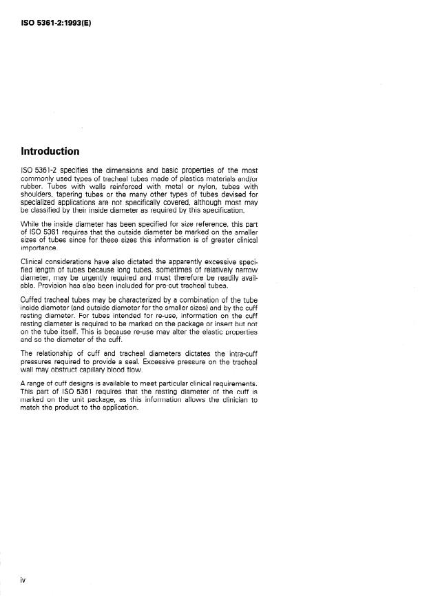 ISO 5361-2:1993 is a standard published by the International Organization for Standardization (ISO). Its full title is "Tracheal tubes — Part 2: Oro-tracheal and naso-tracheal tubes of Magill type (plain and cuffed)". This standard covers: Tracheal tubes — Part 2: Oro-tracheal and naso-tracheal tubes of Magill type (plain and cuffed)
