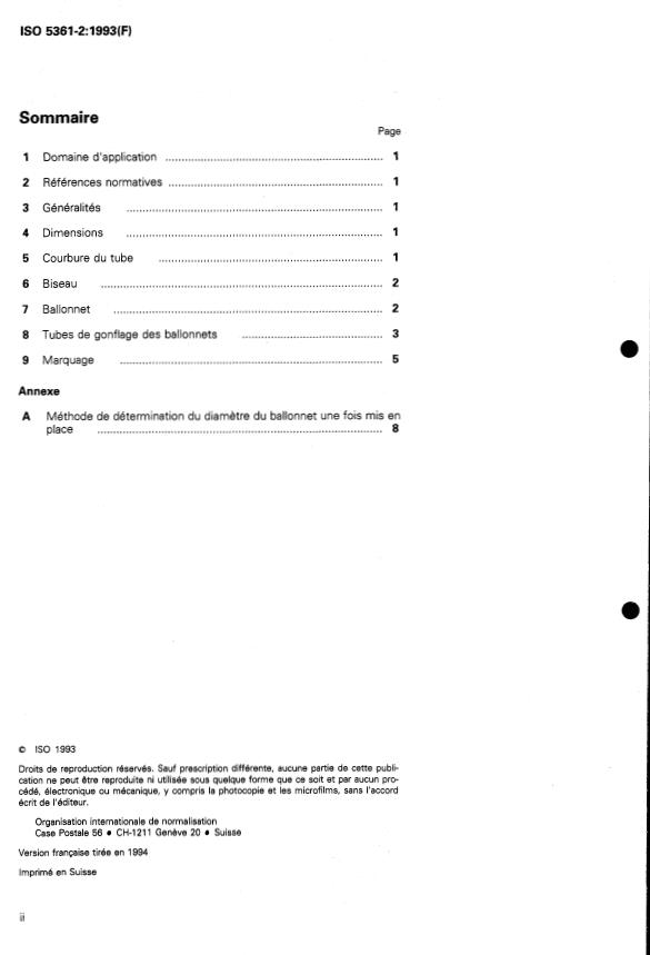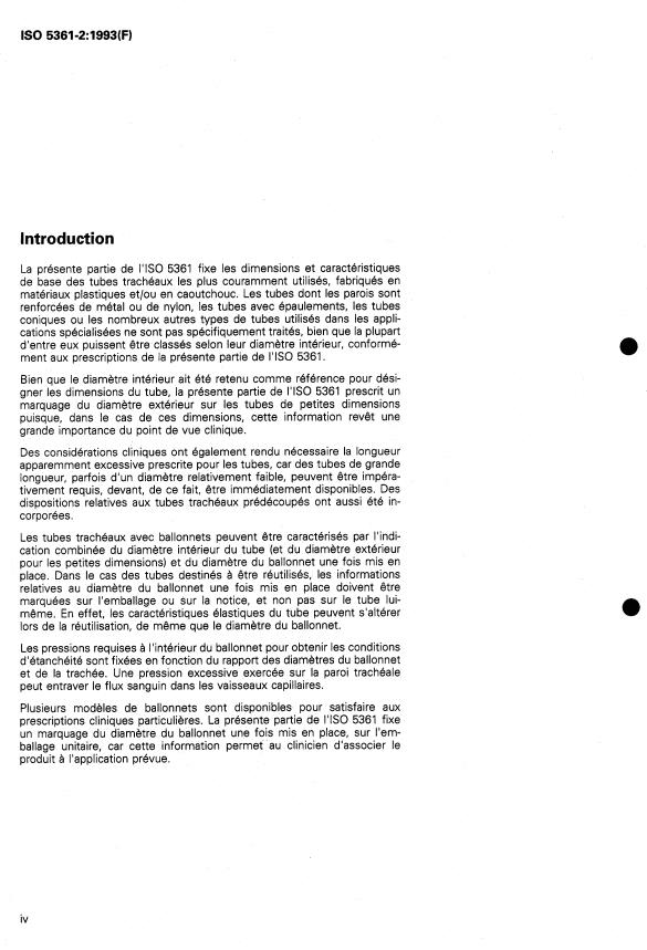 IS0 5361-1:1988, Tubes trachéaux - Partie I: Spé-