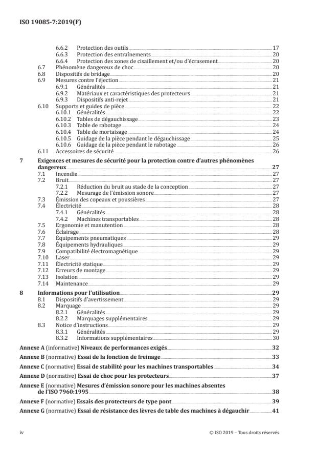 Le présent document donne les exigences et les mesures de sécurité pour les machines fixes et transportables: — à dégauchir, également appelées dégauchisseuses, — à raboter, également appelées raboteuses, — combinées à dégauchir/raboter à porte-outil en position fixe, à avance intégrée en mode rabotage, avec ou sans dispositif d'avance mécanisée démontable en mode dégauchissage et à chargement et déchargement manuels de la pièce, ci-après désignées «machines». Les machines sont conçues pour la coupe de bois massif et de matériaux ayant des caractéristiques physiques similaires à celles du bois. NOTE 1 Pour les définitions de machines fixes et transportables, voir l'ISO 19085-1:2017, 3.4 et 3.5. Il traite de tous les phénomènes dangereux, situations dangereuses et événements dangereux significatifs énumérés à l'Article 4 concernant ces machines lorsqu'elles sont utilisées, réglées et entretenues comme prévu et dans les conditions prévues par le fabricant, incluant une mauvaise utilisation raisonnablement prévisible. Les phases de transport, d'assemblage, de démontage, de mise hors service et de mise au rebut sont également prises en compte. NOTE 2 Pour les phénomènes dangereux pertinents mais non significatifs, par exemple, les arêtes vives du bâti de la machine, voir l'ISO 12100. Il est également applicable aux machines à dégauchir et aux machines combinées à dégauchir/à raboter équipées d'un dispositif de mortaisage optionnel dont les phénomènes dangereux ont été traités. Le présent document ne s'applique pas: a) aux machines comportant plusieurs porte-outils; b) aux machines comportant une unité de mortaisage entraînée par un moteur séparé; c) aux machines dont le porte-outil est réglable pour le réglage de la profondeur de passe en mode rabotage; d) aux machines dont le passage du mode dégauchissage au mode rabotage ou inversement est réalisé par montage ou démontage de parties/unités; e) aux machines où le dégauchissage et le rabotage peuvent être réalisés sur la même section de l'outil en même temps; f) aux machines prévues pour une utilisation en atmosphère explosible; g) aux machines fabriquées avant sa date de publication comme Norme internationale; h) aux machines transportables ayant une largeur maximale de travail ≤ 330 mm. NOTE 3 Les outils électriques transportables à moteur sont traités dans l'IEC 62841-1:2014 et dans l'IEC 61029-2-3:1993.