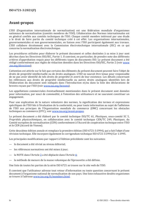Cette deuxième édition annule et remplace la première édition (ISO 6721-3:1994), qui a fait l’objet d’une