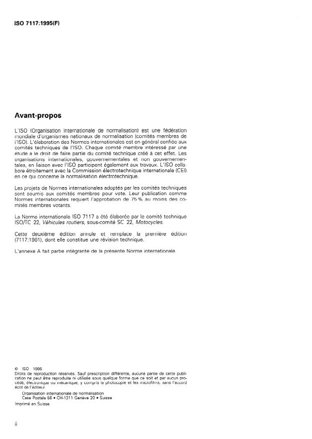 ISO 7117:1995 - Motocycles -- Mesurage de la vitesse maximale