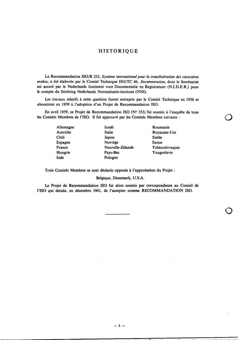 ISO/R 233:1961 - International system for the transliteration of Arabic characters Released:12/1/1961