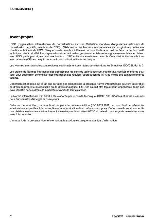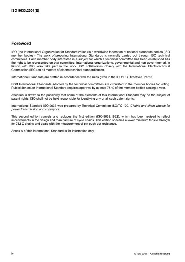 La Norme internationale ISO 9633 a été élaborée par le comité technique ISO/TC 100, Chaînes et roues à chaînes