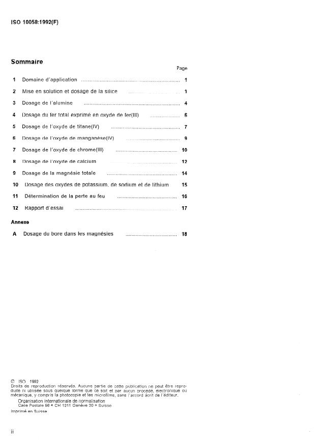ISO 10058:1992 - Produits de magnésie et de dolomie -- Analyse chimique