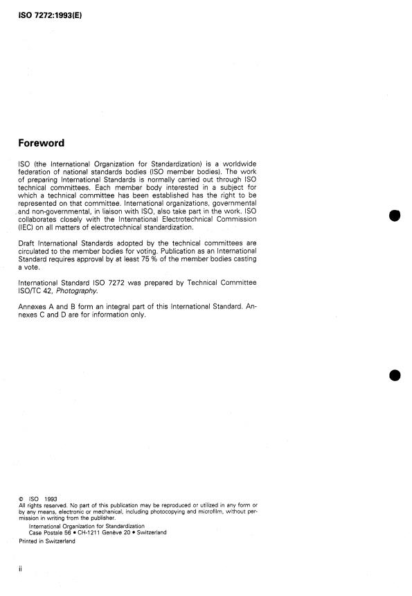 ISO 7272:1993 is a standard published by the International Organization for Standardization (ISO). Its full title is "Photography — Paper dimensions — Paper for documentary reproduction". This standard covers: Photography — Paper dimensions — Paper for documentary reproduction