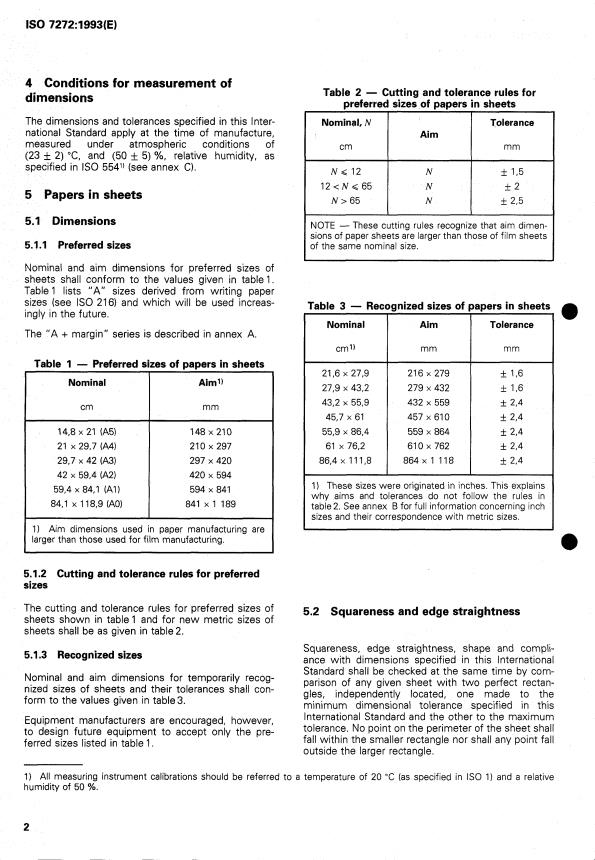 ISO 7272:1993 - Photography -- Paper dimensions -- Paper for documentary reproduction