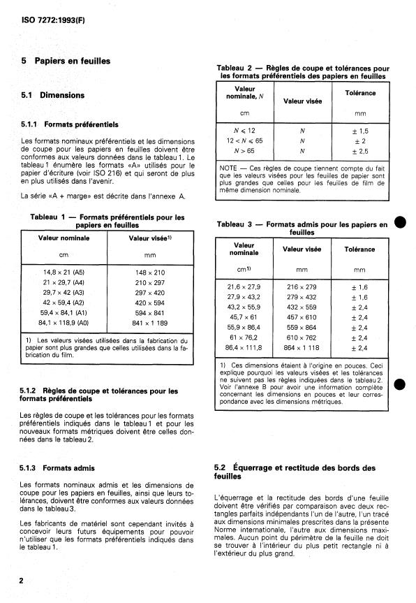 papier d'écriture (voir IS0 216) et qui seront de plus