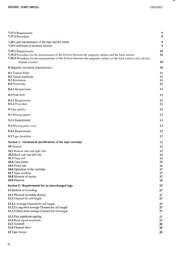 ISO/IEC 15307:1997 is a standard published by the International Organization for Standardization (ISO). Its full title is "Information technology - Data interchange on 12,7 mm 128-track magnetic tape cartridges - DLT 4 format". This standard covers: Information technology - Data interchange on 12,7 mm 128-track magnetic tape cartridges - DLT 4 format