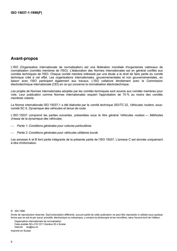 ISO 15037 consists of the following parts, under the general title Road vehicles — Vehicle dynamics test methods: