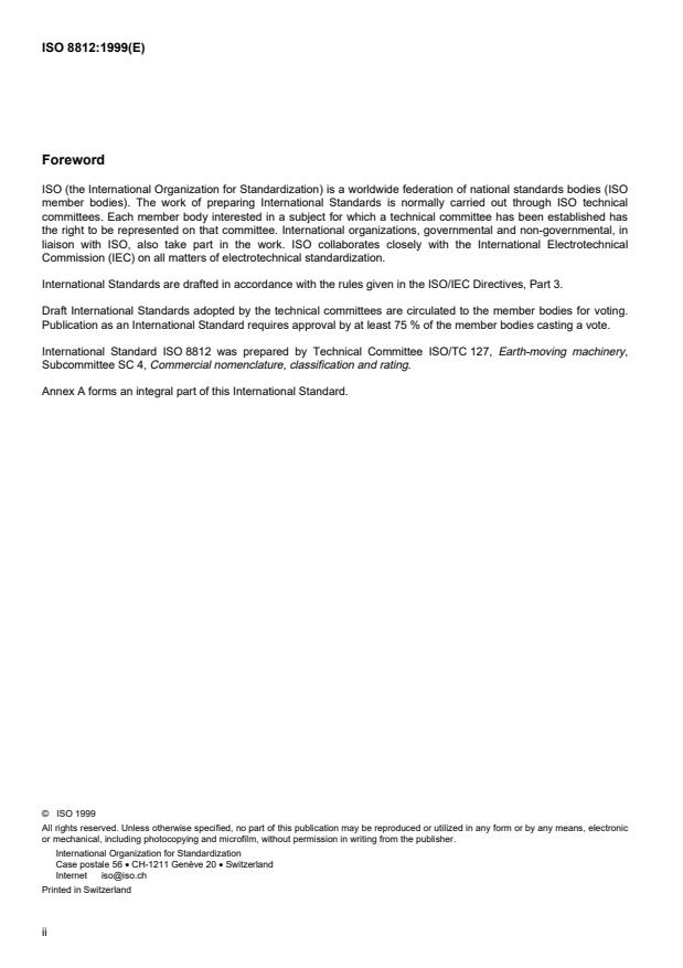 International Standard ISO 8812 was prepared by Technical Committee ISO/TC 127, Earth-moving machinery,