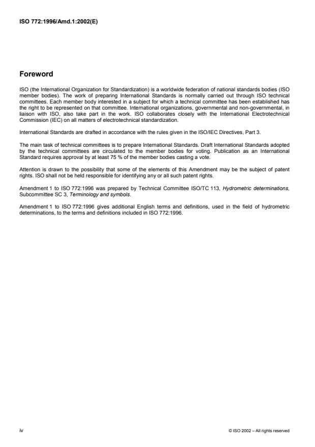 Amendment 1 to ISO 772:1996 was prepared by Technical Committee ISO/TC 113, Hydrometric determinations,