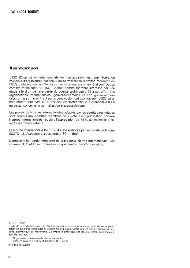 ISO 11204:1995 is a standard published by the International Organization for Standardization (ISO). Its full title is "Acoustics — Noise emitted by machinery and equipment — Measurement of emission sound pressure levels at a work station and at other specified positions — Method requiring environmental corrections". This standard covers: Specifies a method for measuring the emission sound pressure levels of machinery and equipment at a work station and at other specified positions nearby, in any environment which meets certain requirements. Gives instructions for the installation and operation of the machine under test and for the choice of microphone positions for the work station.