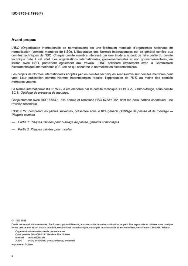 ISO 6753 consists of the following parts, under the general title Tools for pressing and moulding - Machined plates: