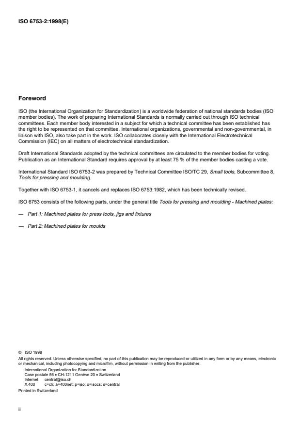 - ISO 6753 is a multipart standard. ISO 6753-1 covers machined plates for press tools, jigs and fixtures and together with part 2 replaces ISO 6753:1982.