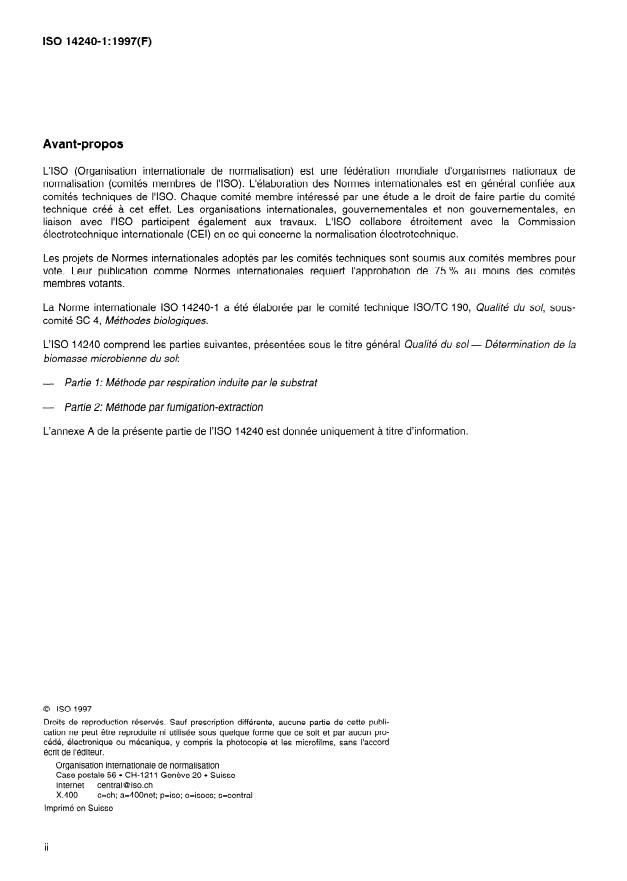 La Norme internationale ISO 14240-I a été élaborée par le comité technique ISOTTC 190, Qualité du sol, sous-