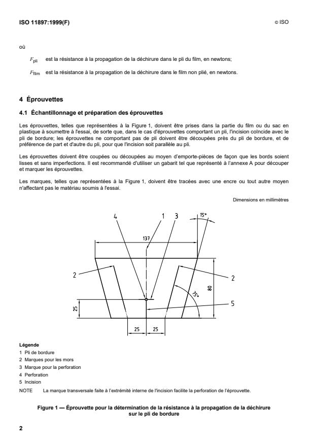 Keywords: ISO 11897, tear propagation, edge fold, thermoplastic flexible film, packaging standard, residual resistance, sack testing, tensile test.