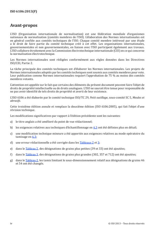 Cette troisième édition annule et remplace la deuxième édition (ISO 6106:2005), qui fait l’objet d’une