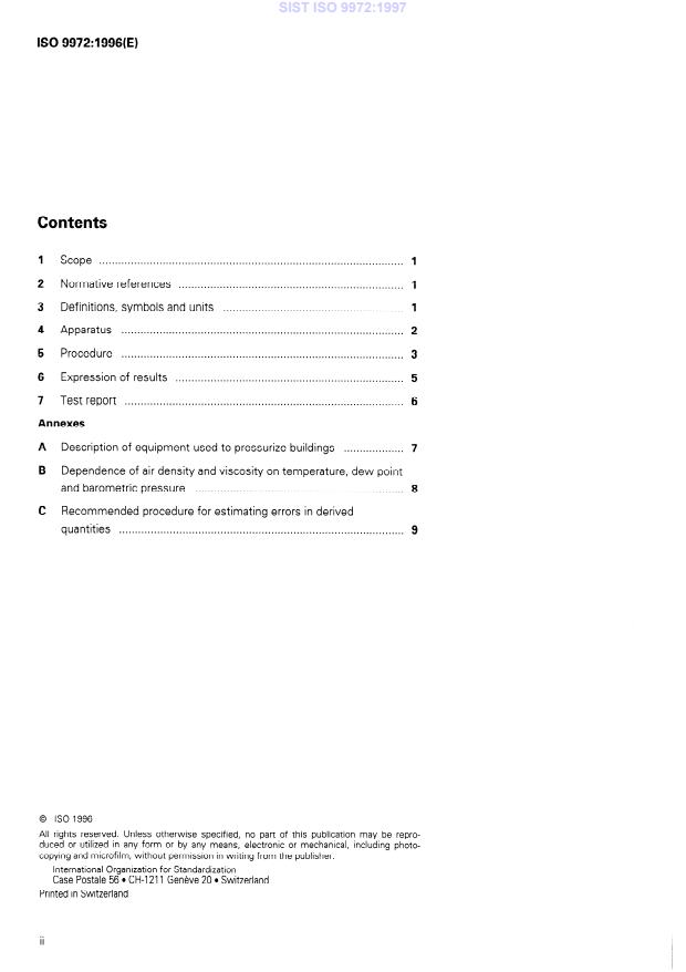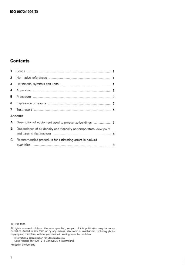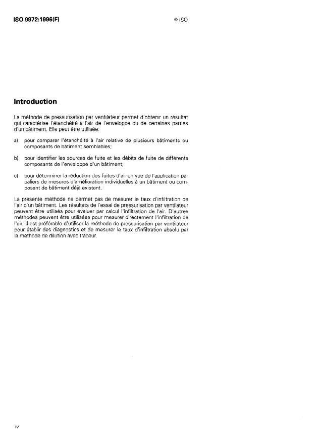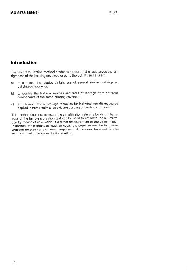 ISO 9972:1996 is a standard published by the International Organization for Standardization (ISO). Its full title is "Thermal insulation — Determination of building airtightness — Fan pressurization method". This standard covers: Thermal insulation — Determination of building airtightness — Fan pressurization method