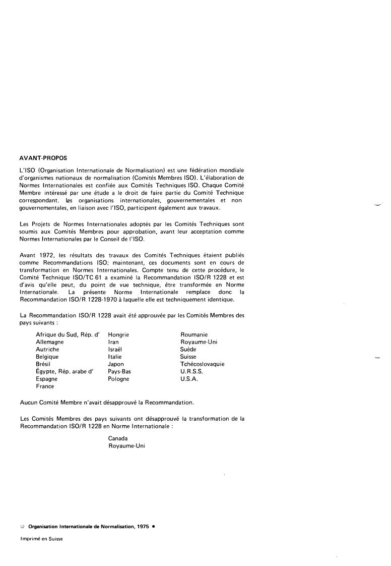 IS0 Recommendation R 1228 was approved by the Member Bodies of the