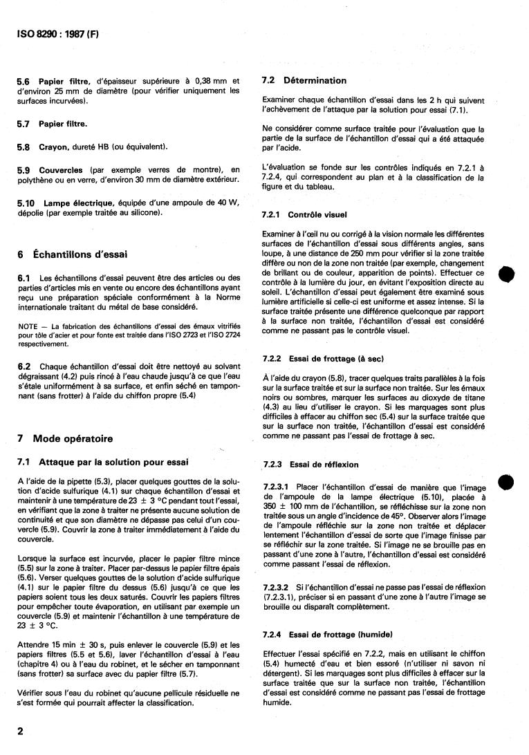 ISO 8290:1987 - Vitreous and porcelain enamels — Determination of resistance to sulfuric acid at room temperature Released:4/9/1987