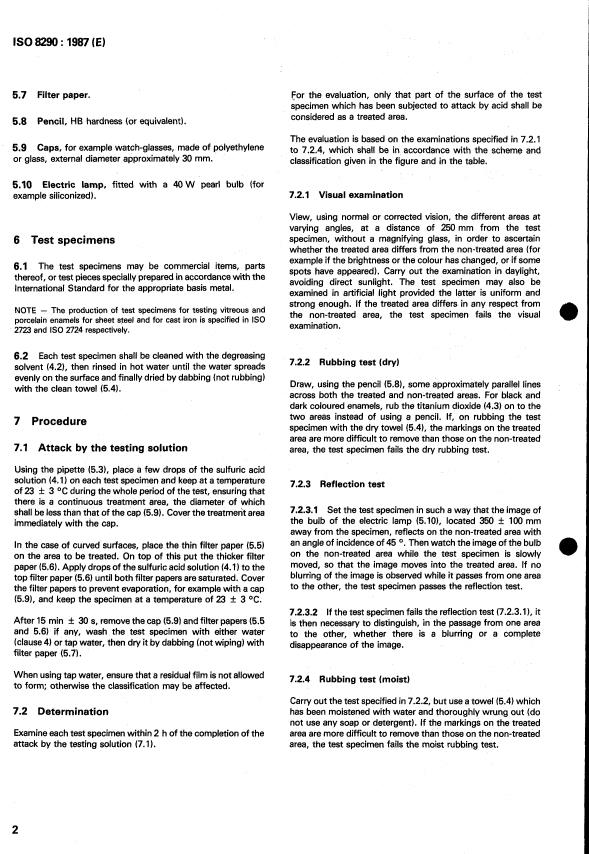 ISO 8290:1987 - Vitreous and porcelain enamels -- Determination of resistance to sulfuric acid at room temperature