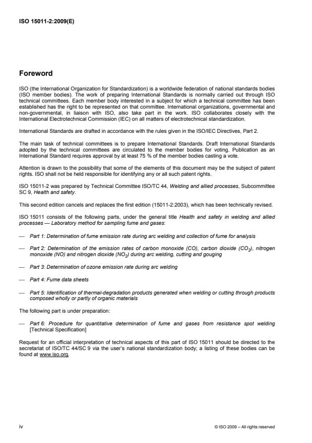Keywords: ISO 15011-2, welding fume, emission rates, CO, CO2, NO, NO2, hood technique, arc welding, cutting, occupational health, laboratory method.