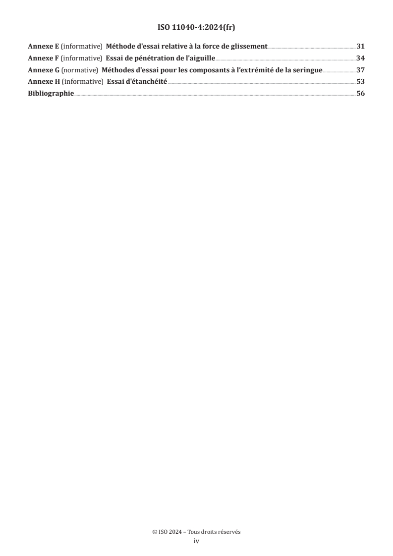 - Test methods & annexes: Normative and informative annexes provide test methods (Annex C, G), glide‑force, needle penetration, tightness, sample preparation for endotoxin and particulates, and examples of subassembled syringe types.