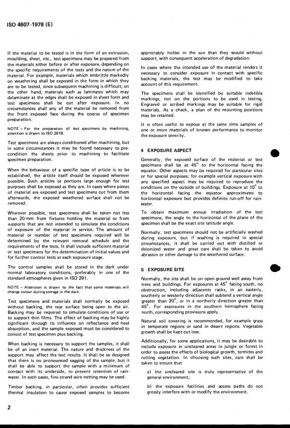 ISO 4607:1978 is a standard published by the International Organization for Standardization (ISO). Its full title is "Plastics — Methods of exposure to natural weathering". This standard covers: Plastics — Methods of exposure to natural weathering