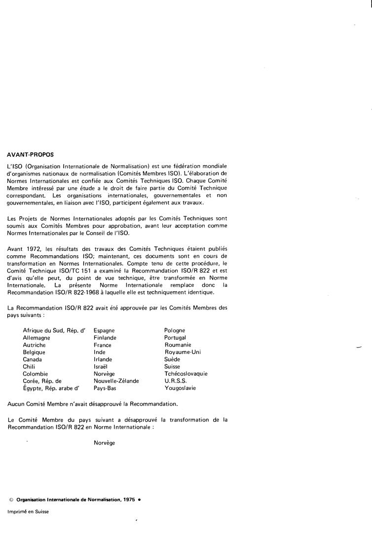 replaces IS0 Recommendation R 822-1968 to which it is technically identical.