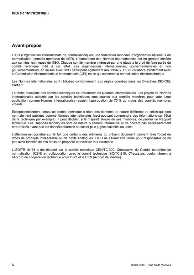 ISO/TR 16178:2010 is a technical report published by the International Organization for Standardization (ISO). Its full title is "Footwear — Critical substances potentially present in footwear and footwear components". This standard covers: ISO/TR 16178:2010 establishes a list of critical chemical substances potentially present in footwear and footwear components. ISO/TR 16178:2010 describes the critical chemical substances, their potential risks, in which materials they could be found, and which test method(s) can be used to quantify them. It does not include requirements; it is the responsibility of the user of ISO/TR 16178:2010 to fix his level of acceptance, e.g. using a defined concentration or detection limit or quantification limit. ISO/TR 16178:2010 applies to any kind of footwear and footwear material.