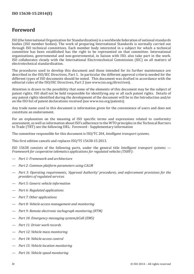 ISO 15638-15 is one part of the TARV family; related parts include: