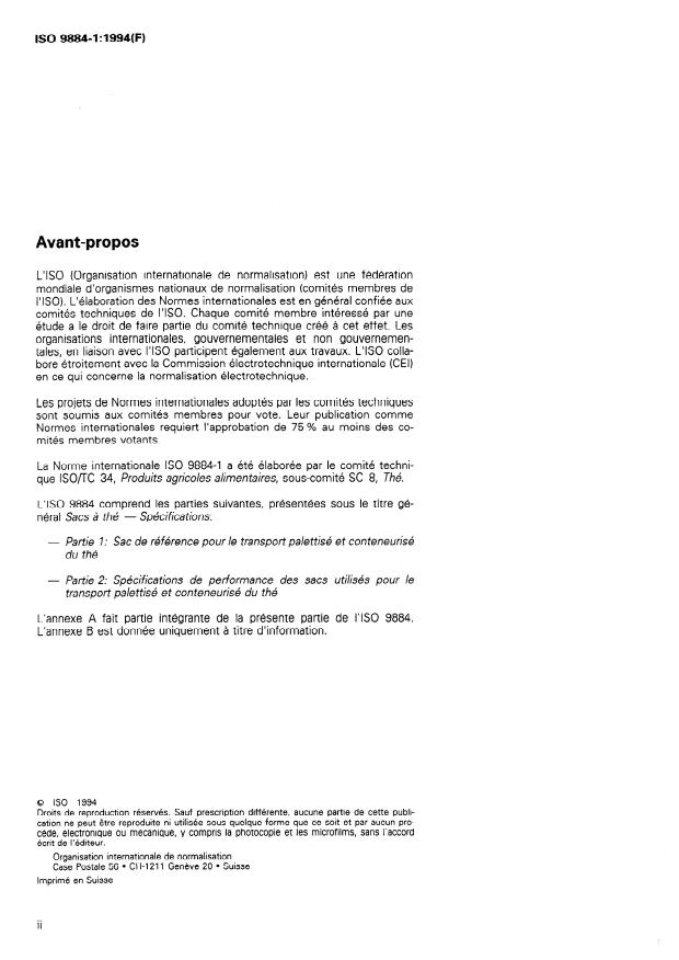 Keywords: ISO 9884-1, tea sacks, reference sack, palletized transport, containerized transport, tea packaging, kraft paper, aluminium/polyethylene barrier, packaging standard.