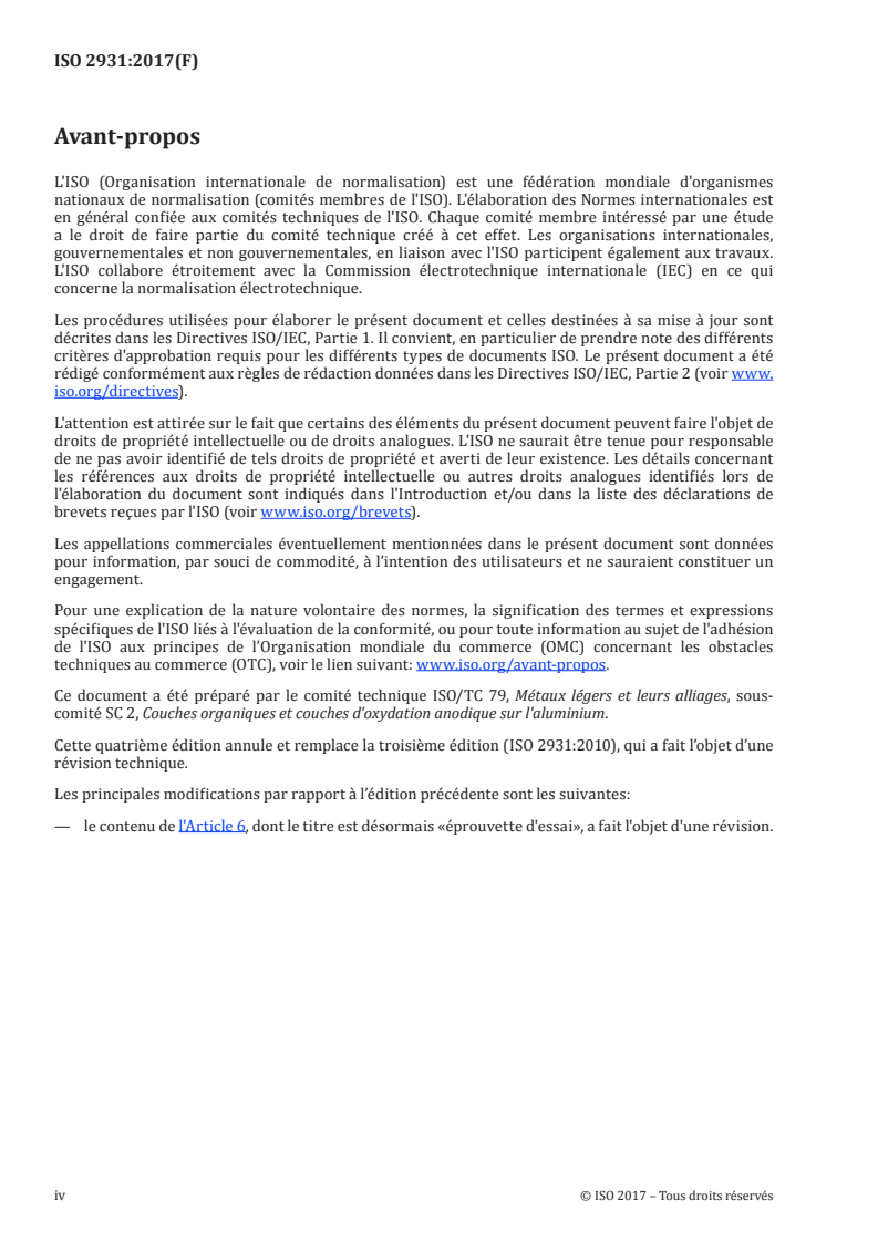 ISO 2931:2017 - Anodisation de l'aluminium et de ses alliages — Évaluation de la qualité des couches anodiques colmatées par mesurage de l'admittance Released:12/4/2017