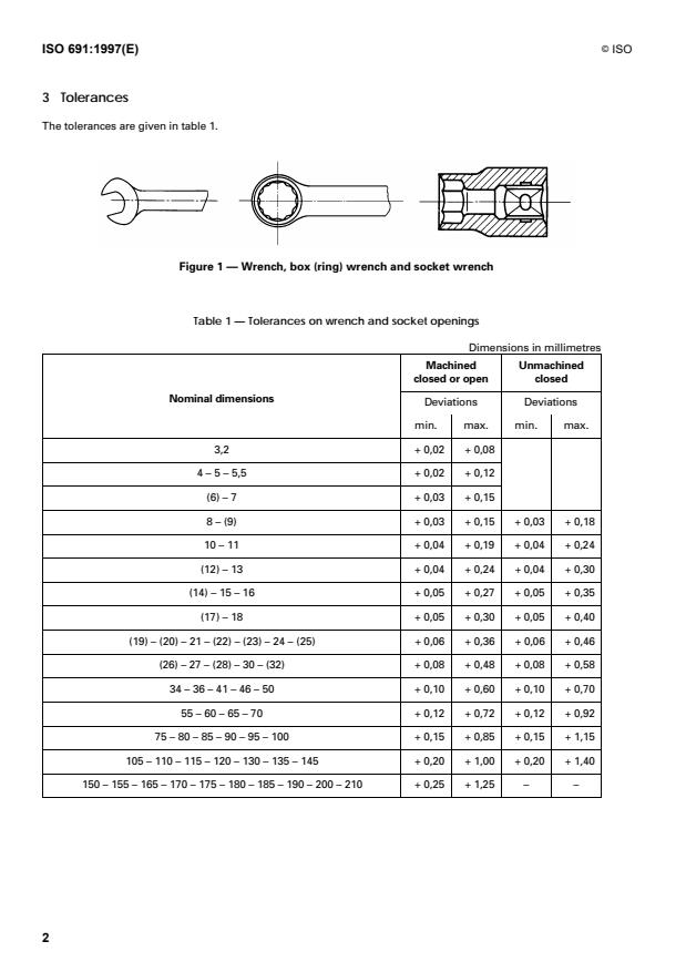 ISO 691:1997 - Assembly tools for screws and nuts -- Wrench and socket openings -- Tolerances for general use