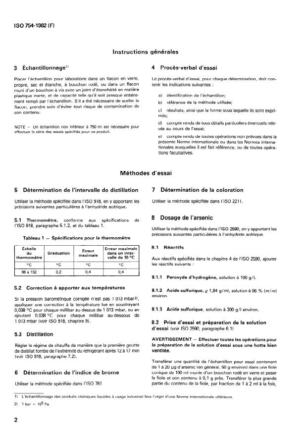 ISO 754:1982 - Acetic anhydride for industrial use -- Methods of test