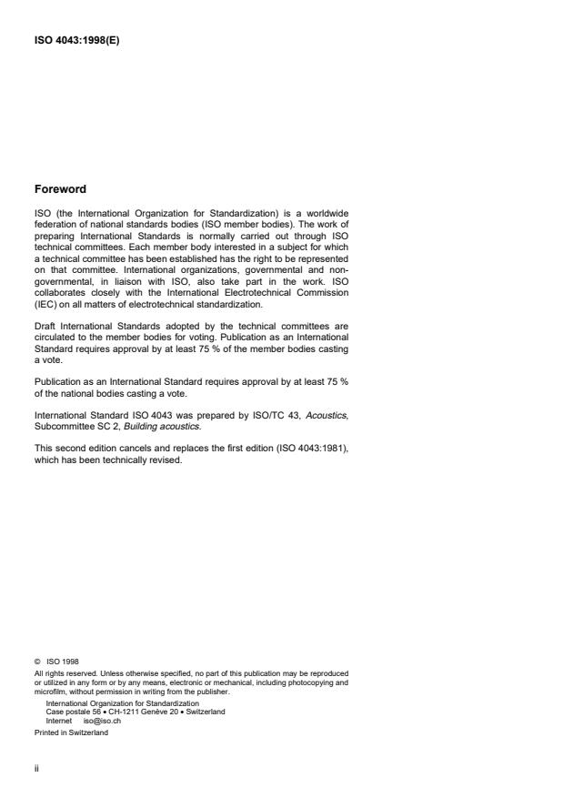 International Standard ISO 4043 was prepared by ISO/TC 43, Acoustics,
