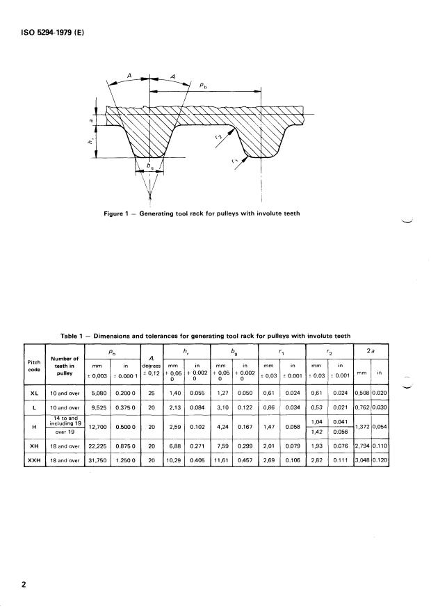 ISO 5294:1979 is a standard published by the International Organization for Standardization (ISO). Its full title is "Synchronous belt drives — Pulleys". This standard covers: Synchronous belt drives — Pulleys