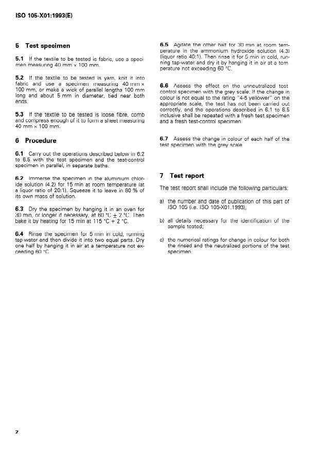 - Reporting: Report shall include the ISO reference (ISO 105-X01:1993), sample identification and numerical grey-scale ratings for both rinsed and neutralized specimen portions.