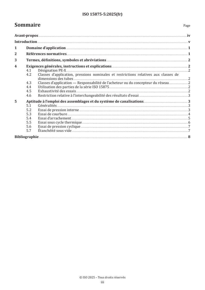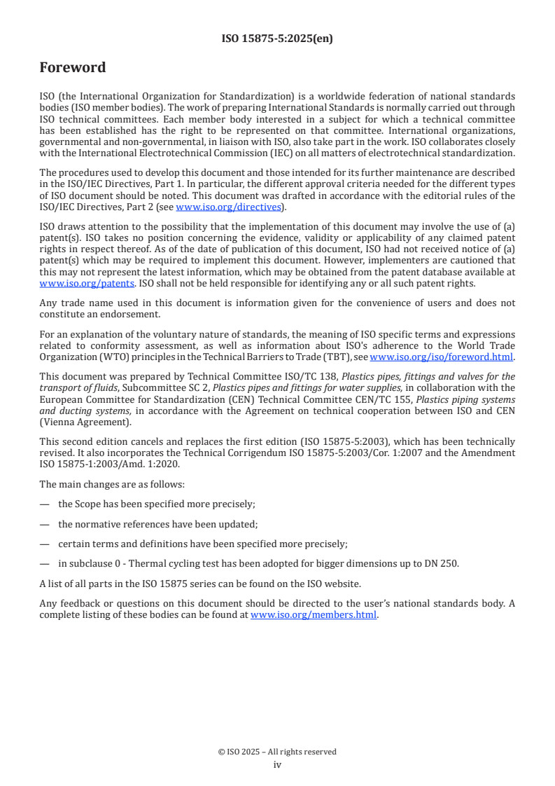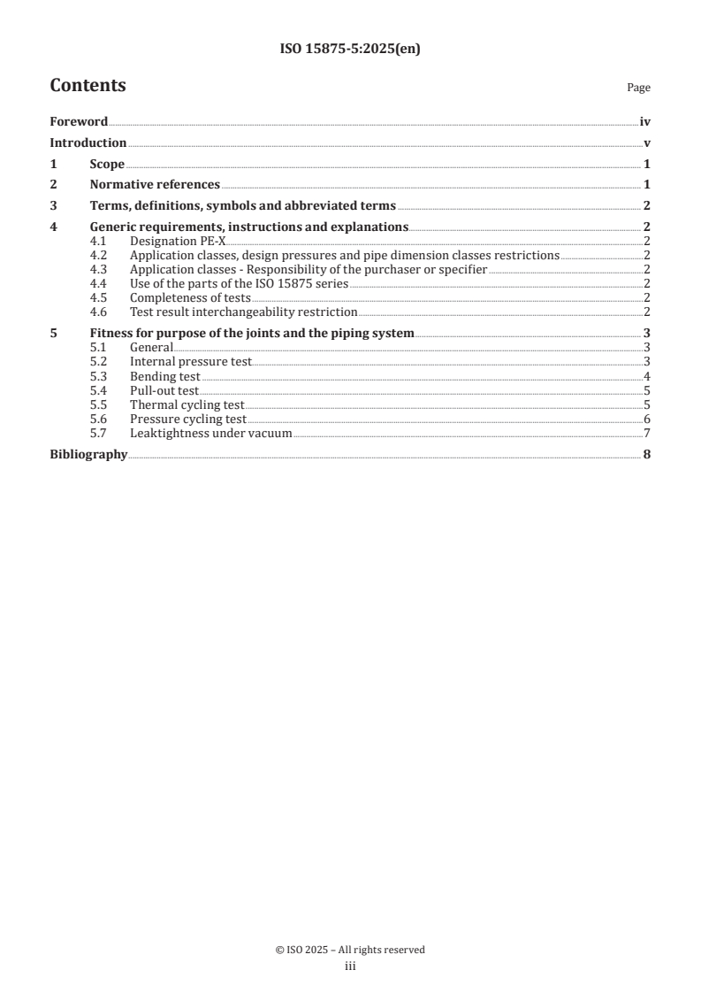 Keywords: ISO 15875-5:2025, PE‑X, crosslinked polyethylene, plastics piping systems, fitness for purpose, hot and cold water installations, joint testing, thermal cycling, pressure cycling.