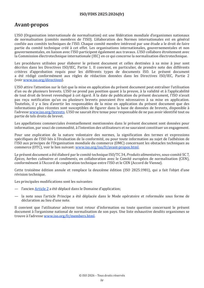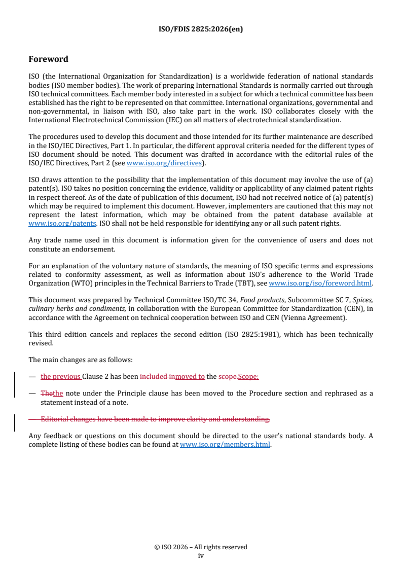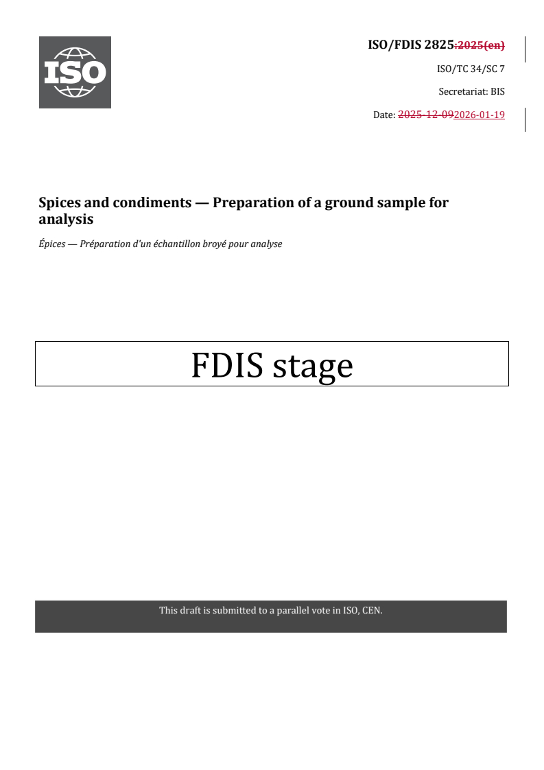 REDLINE ISO/FDIS 2825 - Spices and condiments — Preparation of a ground sample for analysis Released:19. 01. 2026