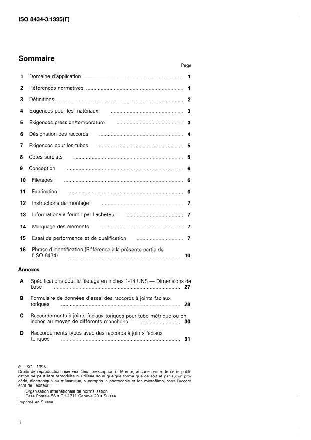 ISO 8434-3:1995 - Raccords de tubes métalliques pour transmissions hydrauliques et pneumatiques et applications générales