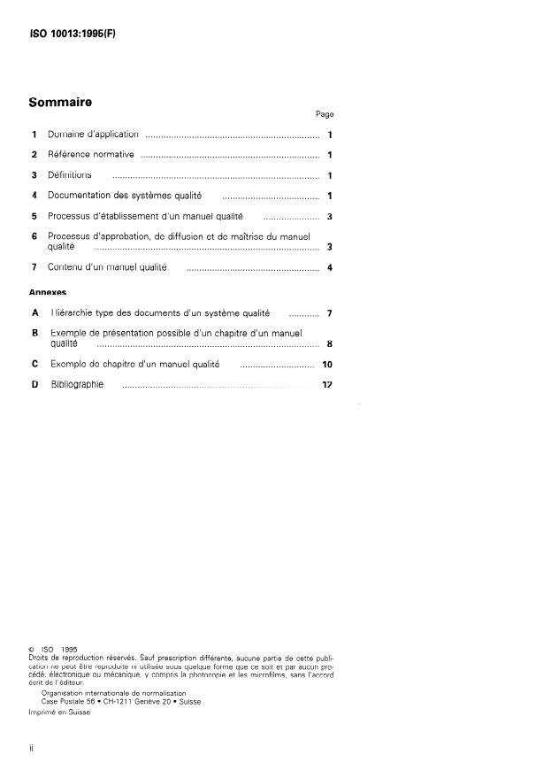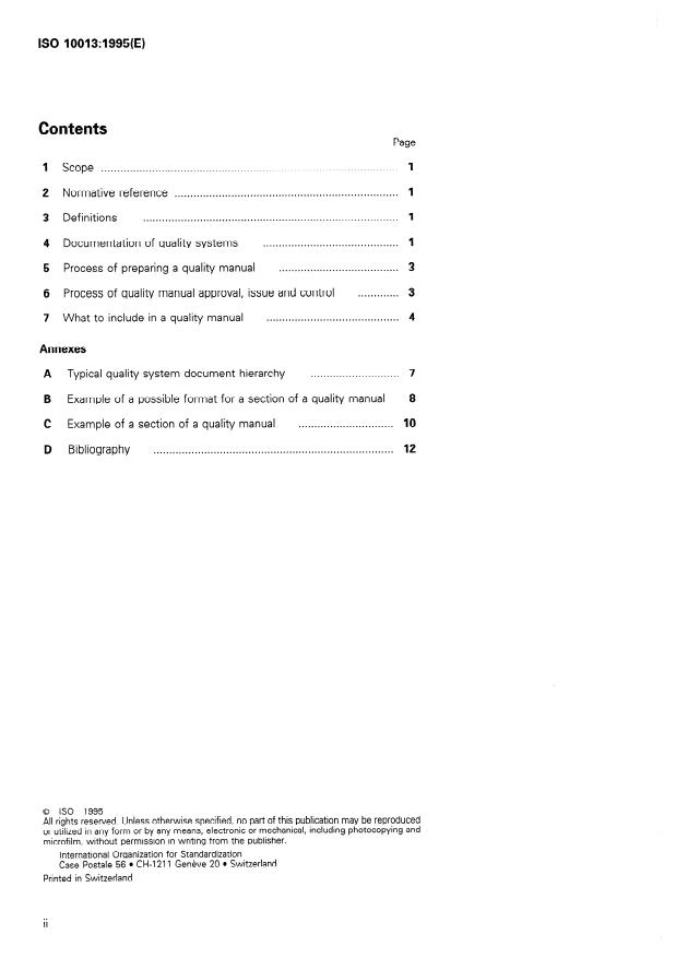ISO 10013:1995 is a standard published by the International Organization for Standardization (ISO). Its full title is "Guidelines for developing quality manuals". This standard covers: Provides guidelines for the development, preparation and control of quality manuals tailored to the specific needs of the user. Does not cover detailed work instructions, quality plans, brochures and other quality system related documents.