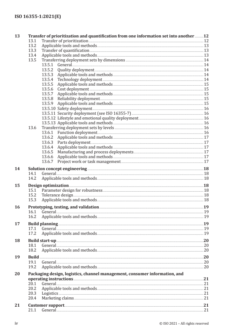 Keywords: ISO 16355-1:2021, QFD, Quality Function Deployment, voice of customer, VOC, product development, design optimization, prototyping, prioritization, deployment.
