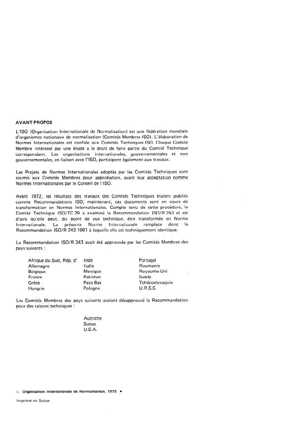 La Recommandation ISO/R 243 avait été approuvée par les Comités Membres des