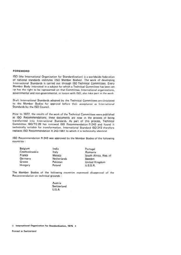 replaces ISO Recommendation R 243-1961 to which it is technically identical.