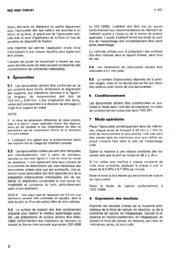 ISO 4587:1995 - Adhésifs -- Détermination de la résistance au cisaillement d'assemblages collés rigide sur rigide a recouvrement simple